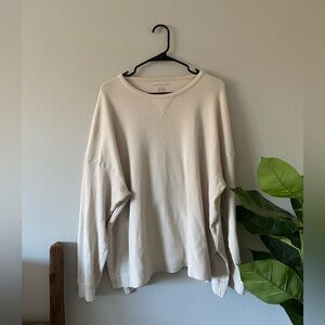 Drop shoulder. Open cardigan with pockets on both front sides. True to size, but has room for sizing up or down. Brand unknown.