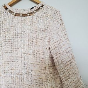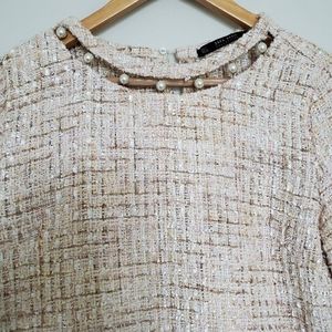 πSOLD πZara Tweed Top with Faux Pearl Details