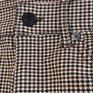 Stretch material. Brown and black checked pattern. Worn once