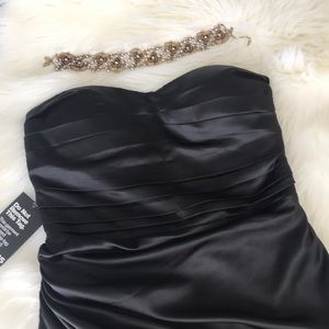 NEW WITH TAGS! Gorgeous little black dress from Express. Just purchased from another posher and was super disappointed it didn’t quite fit because it’s absolutely BEAUTIFUL! It seems to run about a half size small. Has rouched detail at the waist with a pencil skirt bottom and side zipper. There are light “bones” in back, which help hold the structure of the dress. Straps are included with attachments on the inside of the dress. Great for holiday parties, date night or Vegas! Perfect condition!