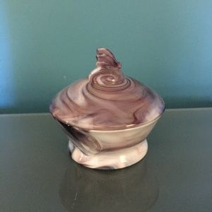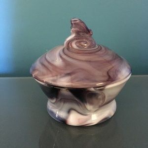Beautiful Glass piece from IMPERIAL GLASS COMPANY Purple Slag Covered Dish with Bee Handle - Slag has a glossy finish