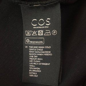 Beautiful COS dress - NEVER WORN! Has a lovely silk ruffle detail, and pockets! Love this dress, very comfortable, just doesn't fit me properly, and I never wore it as a result. Size small.