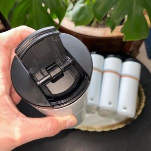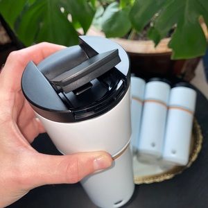 Sophisticated and sharp looking, while still holding the rainbow colors to represent the LGBTQ community without being too flashy & loud. A perfect size rainbow band is set on top White lacquered metal & paired w/ a matte black pop top lid - retains temp (hot or cold) up to 4 hours