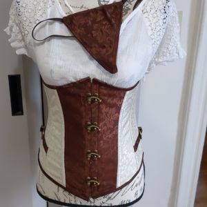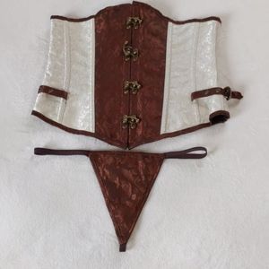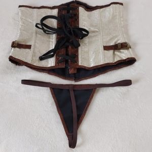 Corset top was worn once, bottoms never worn. Size L (fully adjustable, of course).