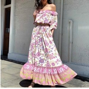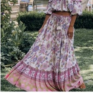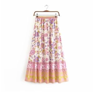 Boho Pink gypsy floral print ruffle hem Maxi skirt