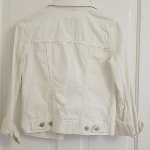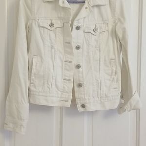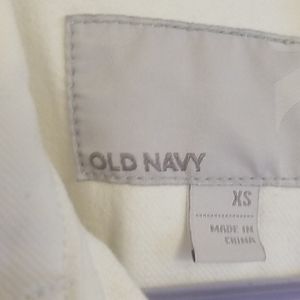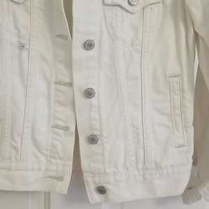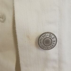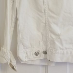 One small speck of dirt (pictured) near button, but I'm sure a Tide pen would take it out. Other than that, great condition!