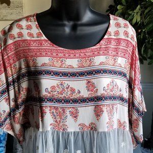 Materials: 100% Rayon; Trim 60% Nylon, 40% Cotton