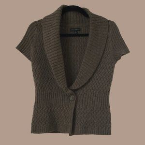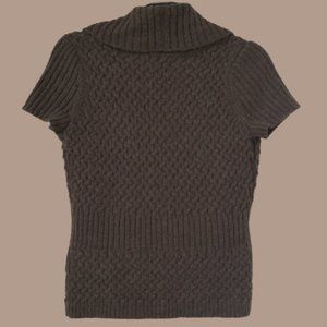 From the great American Designer, Willi Smith, of WilliWear, we have this beautifully woven short sleeved sweater. I can only describe the color as Olive Brown, so I hope that defines it for you. This sweater will be a statement piece when you wear it because the quality and the fine design of the knitted stitching just catch the eye. Pair it with a pencil skirt for a look that is runway ready. S. B 17, W 15, Sleeve 6.5, Length 21"