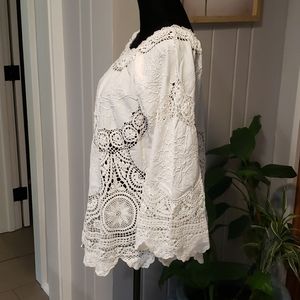 Beatiful crochet blouse in excellent vintage condition. In like new condition. No stains or tears. Bell sleeves. Brand and size unkown.