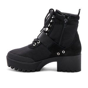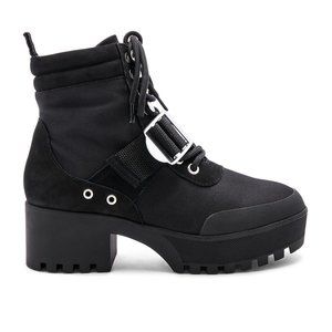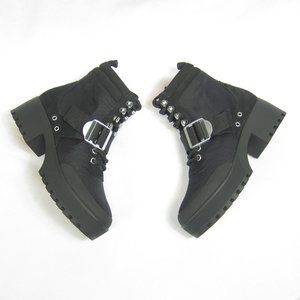 Womens Steve Madden Black Combat Boots Size 7 Buckle Accent - NEW $130