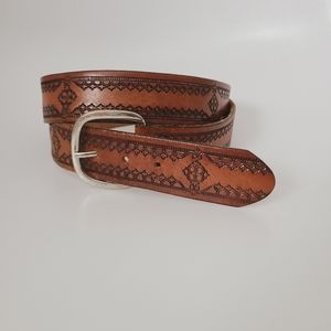 Vintage Brown Leather Embossed Boho Western Belt