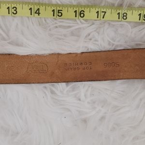 This belt is in good condition. Light signs of wear and scuffs. Leather. Tagged size 38.. Approximately 44.5" long.