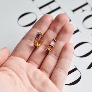 Beautiful handcrafted gold-plated earrings from my boutique! ✨ One of a kind, absolutely stunning. Real baguette mini crystals in the hoop.