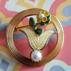 Relisted- -vintage Allison Reed brooch flowers gold tone pin