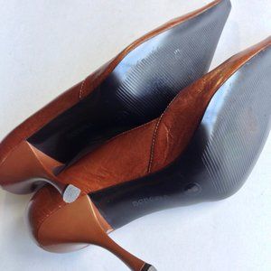 BCBGIRLS-Brown Metallic Leather Pump Heels, point toe, metallic sheen, leather creasing, hard soles(slight wear), Size 10B
