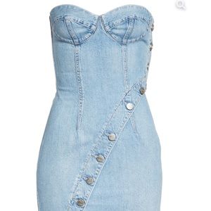 Sexy back zip denim dress as worn by Kylie Jenner. I had the back altered to fit my bust. Elasticity in the upper back for bust. Fits 32B-34C