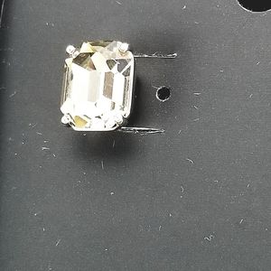 COACH Emerald Cut Stud Earrings Clear Gray Silver With Box $58