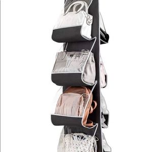 Detachable hanging handbag organizer. Keep your beautiful collection of bags in this storage to keep them beautiful for RESALE! HOLDS 8 BAGS, THE SMALLER ONE SEEN IN PICTURE IS NOT AVAILABLE