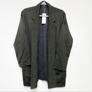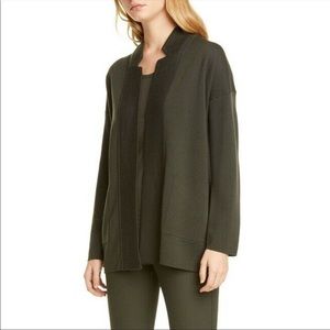 New With Tags, Eileen Fisher Merino Blend Notch Collar Cardigan in Olive Green