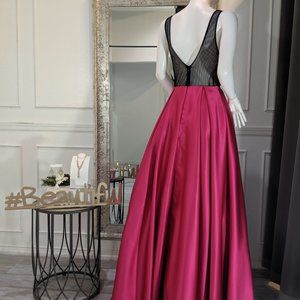 Fuchsia and Black Formal Evening Prom Dress Gown