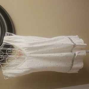 This leather coat is an oatmeal color and buttery soft leather. Overall it's in great condition. There's a small pin hole and spot below the shoulder as pictured. Throw a scarf around it and it's perfect. A few large buttons in the front to close. Pockets on the front. Roomy design. Looks fabulous with tall boots. Size medium. Will fit a 6 to 12 depending upon how roomy you like the fit.