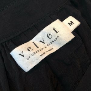 Velvet Graham Spencer Medium Silk Top Blouse Shirt Popover Sheer Floral Black