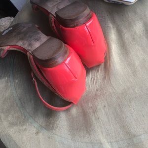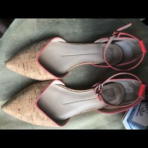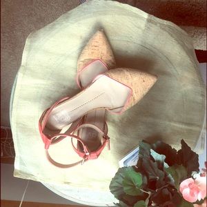 Cork upper. These flats have worn and stayed clean. Very well made. Clean inside. Patient leather heel and straps. All seasons shoes.