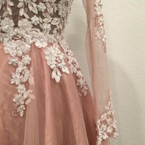 Make jaws drop with this one-of-a-kind, special occasion nude dress!