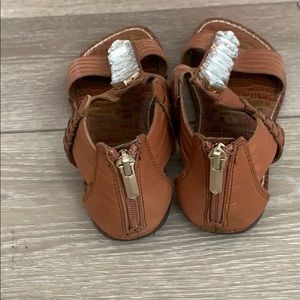 Sam Edelman brownish leather straps with sparkly rhinestone details with zip up back. Only worn a couple times, look almost brand new.