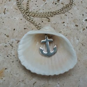 Handmade Necklace With Anchor free hanging inside shell. Silverstone chain 18".
