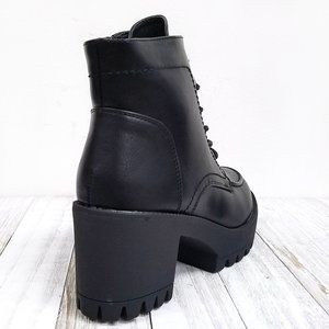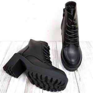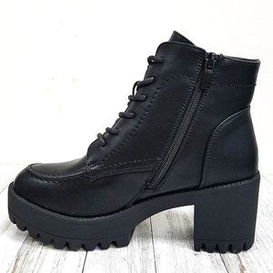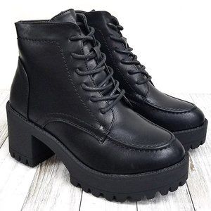 New Black Lace Up Combat Lug Ankle Boots Booties