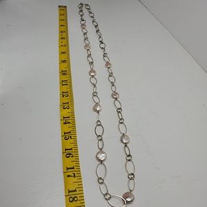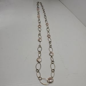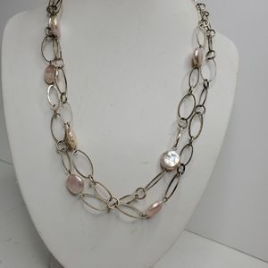 Pale Pink Freshwater Pearl Silver Oval Loop Necklace