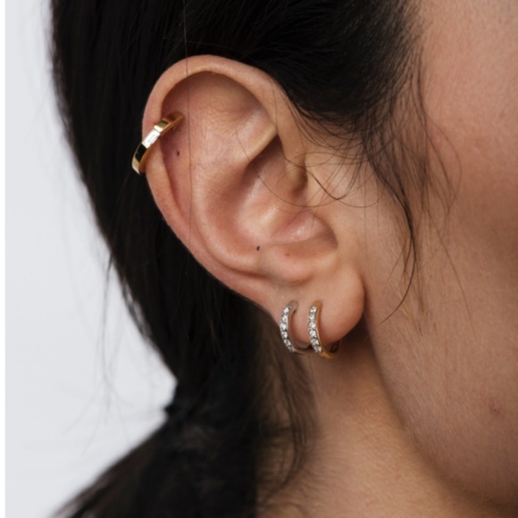 Gorgeous brand new earrings that hug your ear perfectly. 12 Pavé stones give an extra sparkle and class to your everyday earrings. Love these in my first holes. 14k gold over 925 Sterling Silver. Inside diameter 7.15mm.