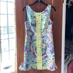 Dusty pink is a great color for fall this year!! Gorgeous clean lines...highlighted with the feminine touches of scalloped edges, a dusty pink color and a rose gold exposed zipper! The fabric stays looking fabulous. The dress is completely lined and easy to wear- not a real fitted style. Ted Baker UK size 4 is equivalent to a US large. The length from shoulder to hem is just shy of 37” and there is a hem if more length is needed. I only wore it once and it’s in perfect condition!
