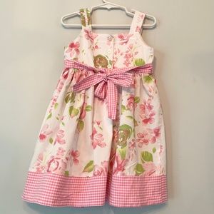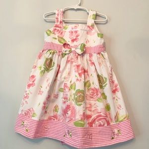 Pink Floral Dress with Pink Gingham and Pink Embroidered Roses with back tie