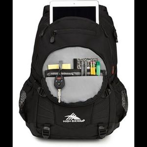 Brand new High Sierra Loop backpack is versatile, multi compartment keeps your gear organized, side compression straps are adjustable to secure items & adjustable bottom webbing straps are perfect for carrying items like sleeping bag ,tent or Jacket,for days in the office, dedicated storage for tablets, phone&personal digital gear, multi pocket organizer with key hook, use for hiking/trail, travel or to class, water repellent Fabric