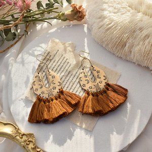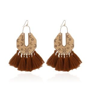 Moon and Star Polygon Tassels Earrings