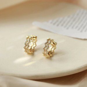 *Gold/Sterling Silver Diamond Wave Hoop Earrings
