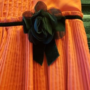 This adorable Kate Spade pleated chiffon dress is a available just in time for holiday pictures and events. It is a bright and beautiful red with black velvet trim and an exposed gold zipper (still in plastic covering). It has a chiffon and tulle flower applique detail. Scoop neck; sleeveless; and lined. It has a ruffle under skirt for extra volume. 100% Polyester; lining is 97%Polyester, 3% elastane. Size 12Y. Pristine condition, never worn. π Host Pick π