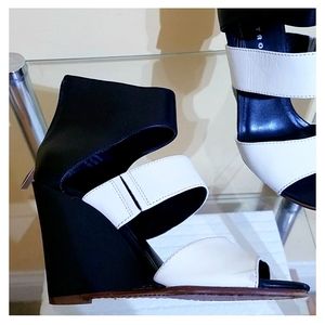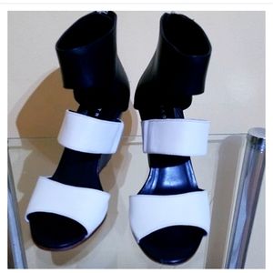 Trouve RobinBlack & White Leather Wedge Sandals 4M