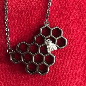 *FREE! with $9 purchase* โAvecโ Honeycomb Necklace, silver bee charm