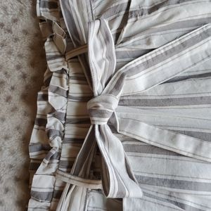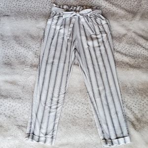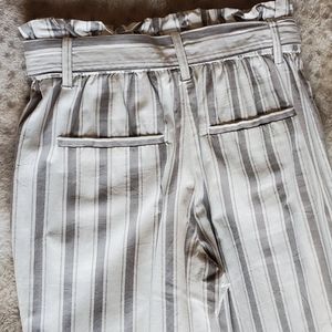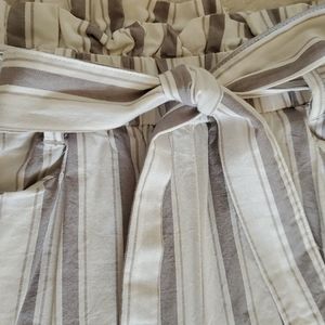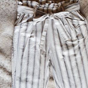 Grey/taupe and white striped Thread & Supply paper bag pants! Super adorable on and a great fit! Perfect for the Beach or out to dinner!