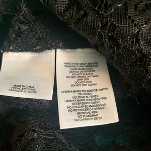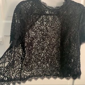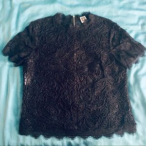 Beautiful like-new Anne Klein top in black lace. Only worn a couple times. Sheer; model is wearing a black cami underneath. Style it that way for a professional look or go without for a subtly sexy going out look. Looks great under a leather jacket. Zips up in back.