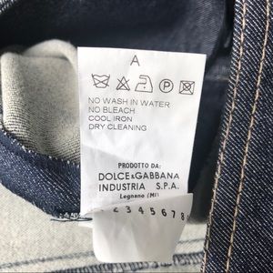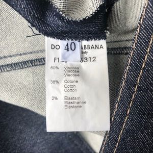 Pristine Condition. This is the upper line and not the D&G label. I purchased this skirt at Neiman Marcus in the late 90’s. It’s been worn a few times and has been stored ever since. The Stretch denim is Beautifully constructed. There are 2 slits on the bottom in the back. Wide waistband with hidden side zipper and hook/eye closures. The fabric is viscose/cotton/elastic and is Dry Clean Only.