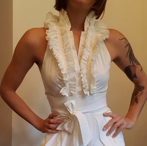 BCBG White Ruffle Cocktail Dress w. Pockets