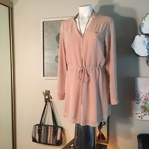 100% light weight cotton with really pretty flower designs front and back. Perfect Condition except one button is chipped 2nd from bottom, easy fix. Runs small, fits like a SM-MED