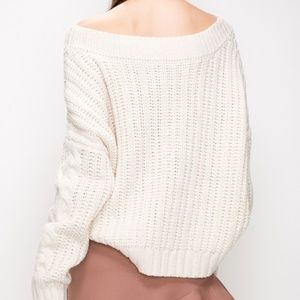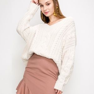 Classic cable knit Long sleeve knit sweater featuring a v neckline and semi oversized fit. This item is true to size for style.