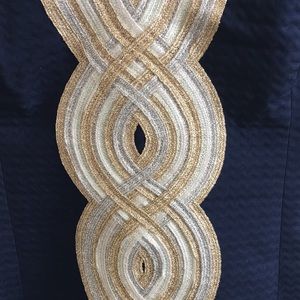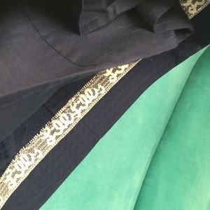 Lily Pulitzer Navy dress with gold/silver detail around shoulders and front of the dress. The inside of the dress is lined as you can see on the 5th picture. This dress is very flattering once you put it on!