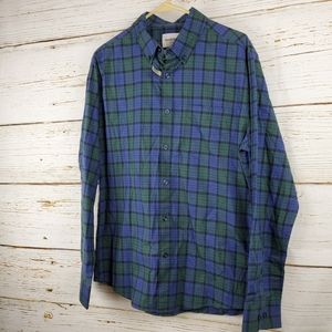 NWOT Goodfellow & Co blue, green and black plaid button down shirt. Long sleeve, button cuff. Chest pocket. 97% cotton 3% spandex. Size: M
