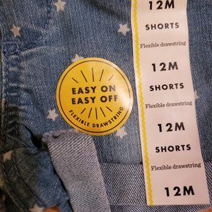 Stars Denim Shorts - size 12M, flexible drawstring to make dressing your baby / little one easier